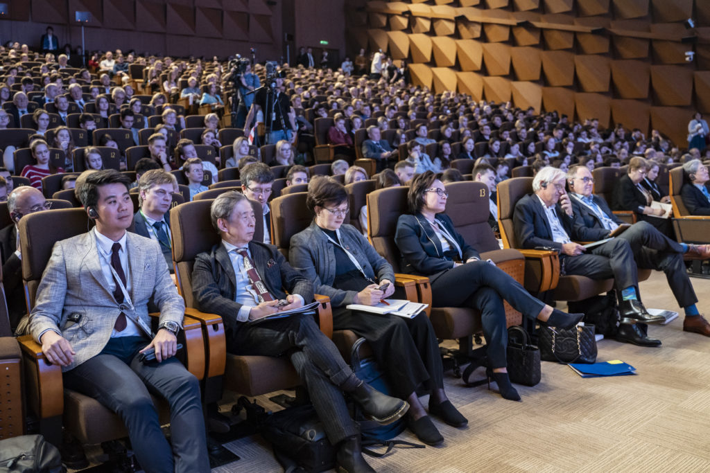 Деловая программа форума продолжилась ключевым мероприятием первого дня — пленарным заседанием, где международные эксперты из России (Сколтех, Агентство стратегических инициатив), Франции (компания LINAGORA), Южной Кореи (Научно-исследовательский институт науки и технологии Института искусственного интеллекта KAIST), Японии (Future Center Alliance Japan) Германия (Knowledge Dialogues), Китай (Гонконгский университет науки и технологии), ученые и студенты из более чем 40 университетов дали оценку процессам глобализации и, таким образом, росту требований к конкурентоспособности национальных экономик, подготовке новых специалистов и роли бизнеса в процессах трансформации.