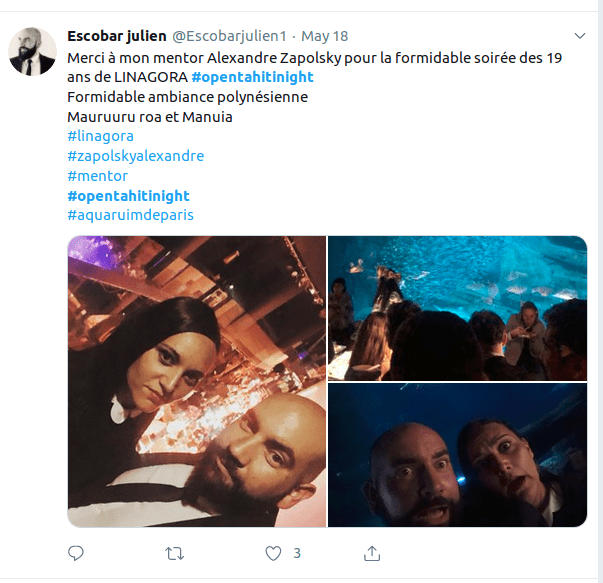 Le 17 mai dernier, LINAGORA a soufflé sa 19ème bougie au coeur de l’Aquarium de Paris. Une soirée sur le thème de la Polynésie pour fêter également la récente labellisation de la French Tech Polynésie, le lancement du Digital Festival Tahiti, et la clôture de Vivatech, au cours de laquelle nous avons eu l’honneur de recevoir Cédric O, Secrétaire d’Etat au Numérique, Maina Sage, Députée de Polynésie et Caroline Tang, Déléguée de Polynésie Française à Paris, mais aussi la plupart de nos clients et partenaires – des plus anciens compagnons de route aux plus récents -, nos amis, et bien sûr nos collaborateurs. En bref, toute la “FAMILLE LINAGORA” était présente à l’#OpenTahitiNight qui fut, grâce à à votre présence et à votre amitié, un magnifique anniversaire.